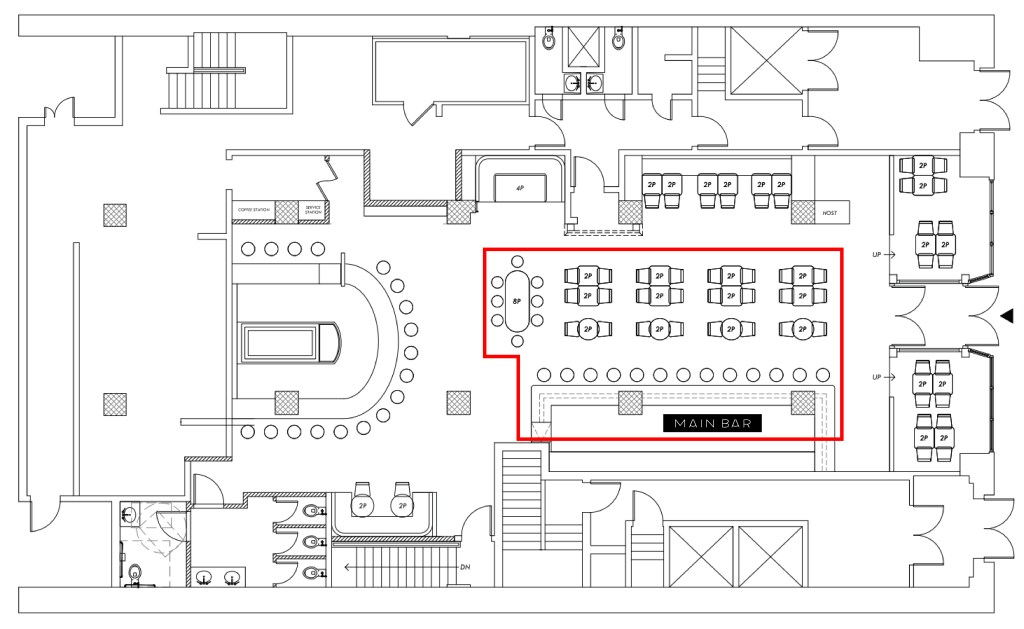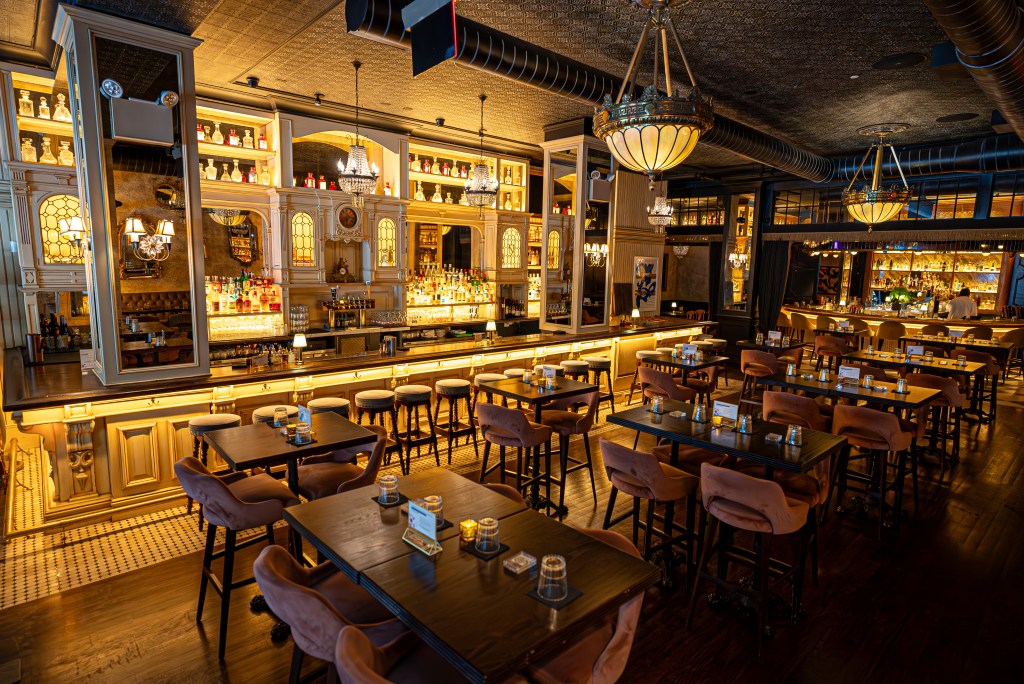 The main bar exudes a sophisticated ambiance, adorned with antique chandeliers, Louis XV-style carved giltwood mirrors, and plush velvet seating, creating an atmosphere of timeless elegance. It is celebrated for its unparalleled gin collection, featuring over 860 varieties—the largest in the America and the second largest globally.